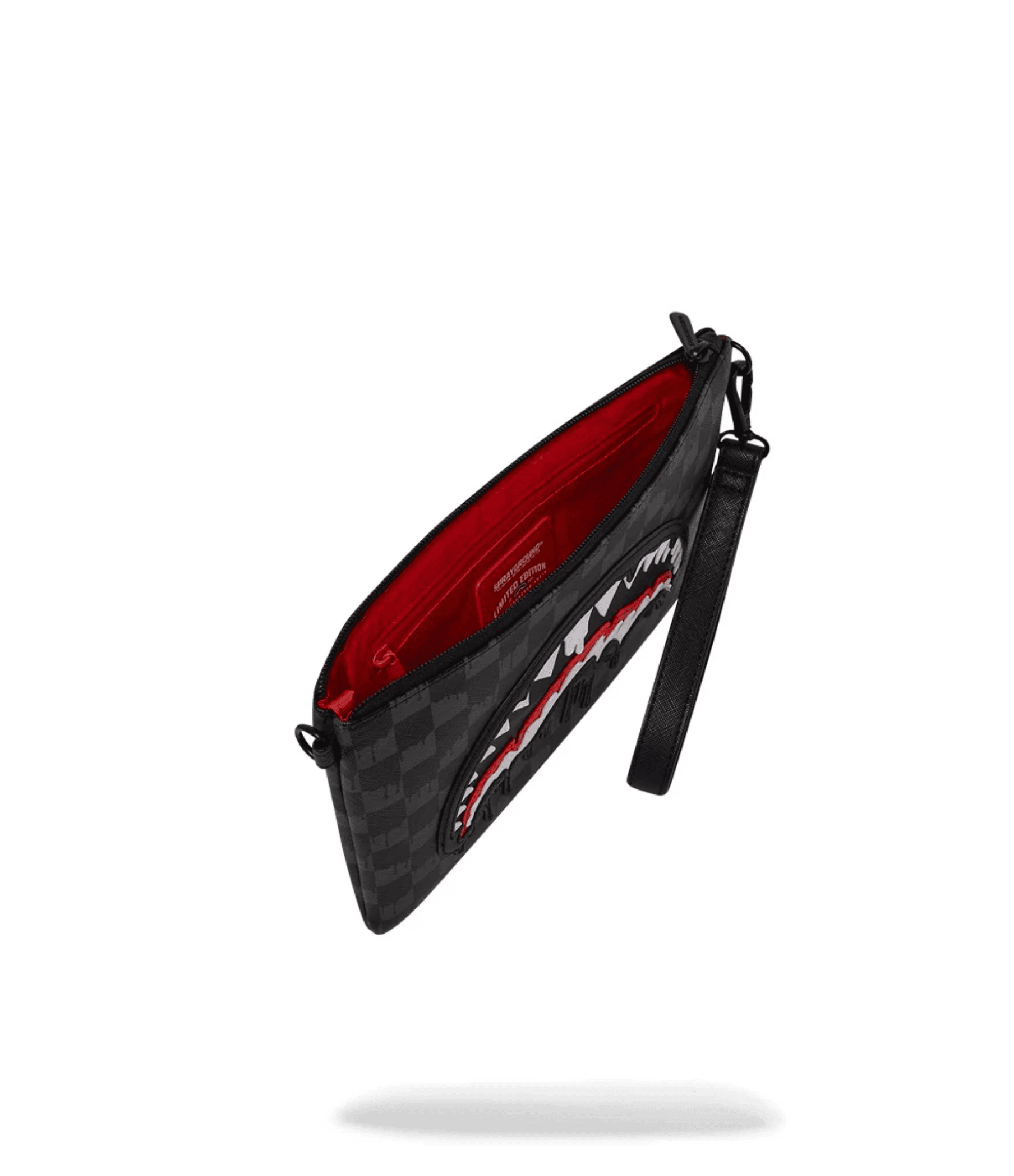 Bolsa con correa extraíble para la muñeca, manijo en el panel frontal, cierre de cremallera, bolsillo secreto en la costura lateral